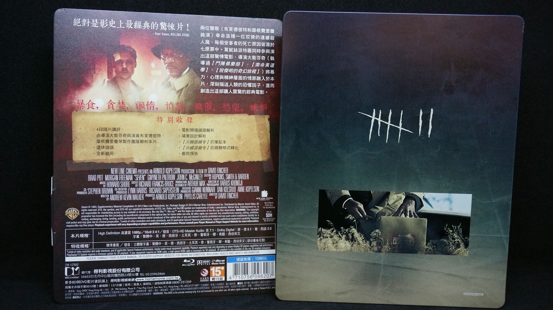 Film on 4K UHD and Blu-RaySteelbookBox PackagingJohn Doe 38-Page BookletFrosted Pine LITTLE TREES Brand Air Freshener7x Deadly Sin Comic Books7x Deadly Sin Crime Scene Art CardsDouble-Sided A3 Poster “Help Me” Glow-in-the-Dark Art CardInvestigation Chalkboard Art CardNumbered Sticker of Authenticity