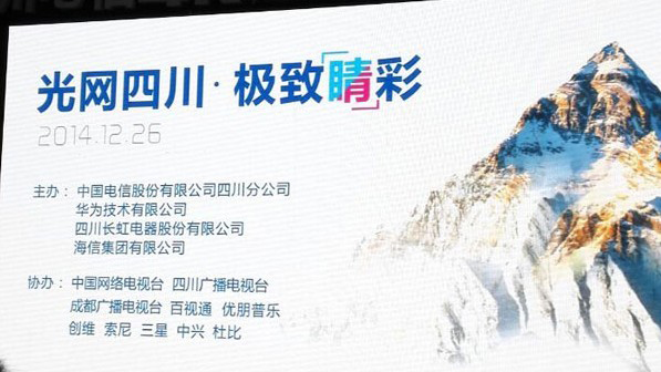 2014年12月26日,“四川電信4K超高清”上市發佈會在成都舉行,四川電信華為聯合宣佈,雙方在四川合作完成了中國首個4K超高清iTV業務商用部署,將“光纖寬頻”和“4K超高清視頻”結合在一起。同時,四川電信宣佈聯合華為、長虹、海信,以及中國網路電視臺、四川廣播電視臺、成都廣播電視臺、百視通、優朋普樂、創維、SONY、三星、中興等國內眾多電視機廠商、通信設備廠商、視聽內容提供者正式成立4K超高清產業聯盟。