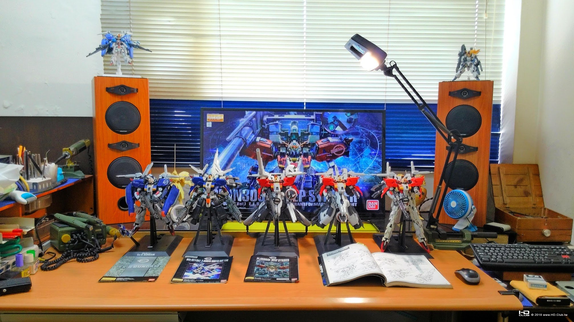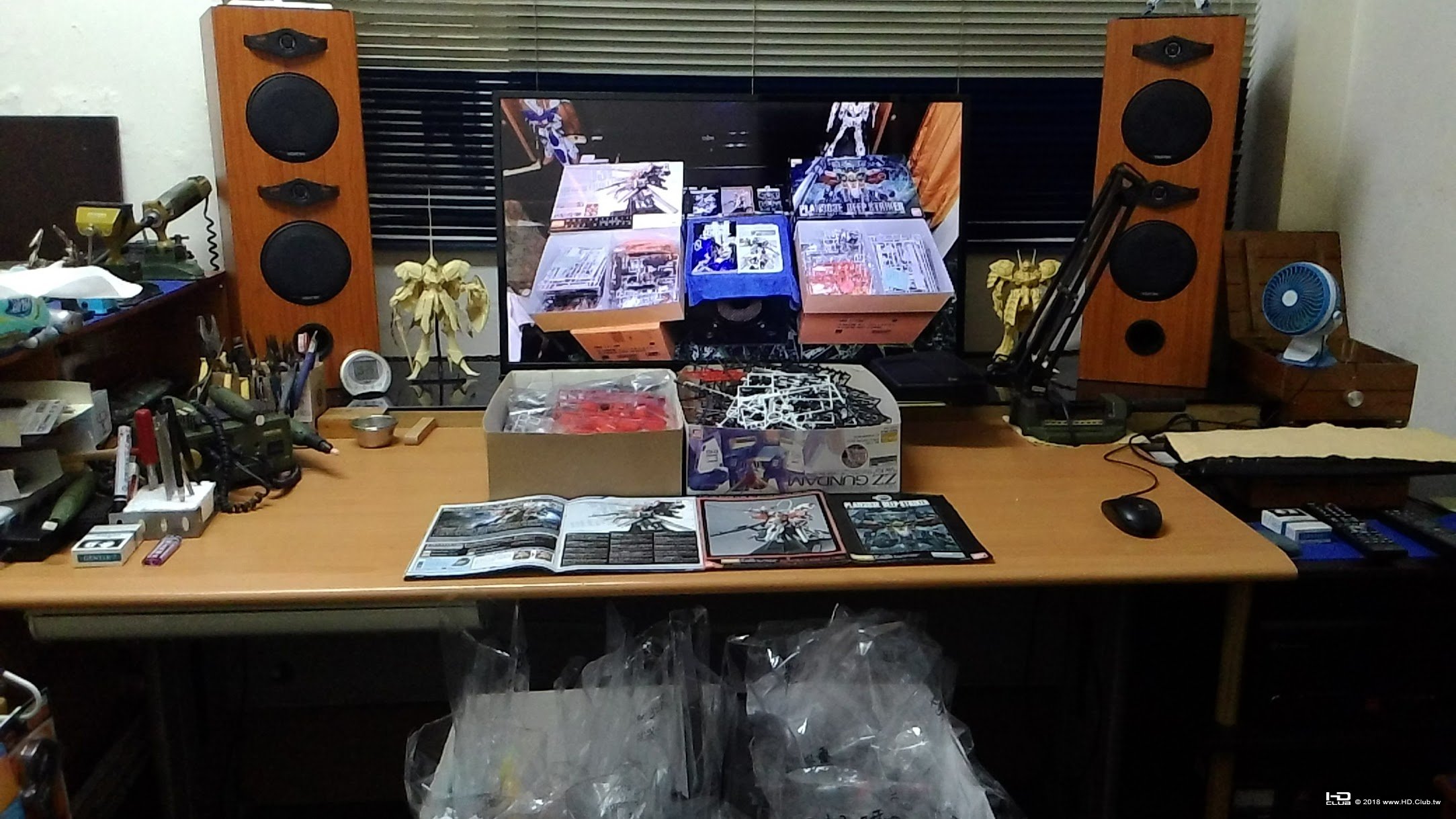 S鋼彈糸列完成: 長炮武器部份暫時不裝,之後有適合套件,可以組裝 組裝完成後模型歸位,位置放....客廳音響上