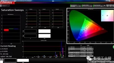 CalMAN5是SpectraCal的專業色彩管理軟體,設計師將△E的換算定義,用圖表、長條圖和水平線的方式予以描述,這樣就可以更直觀的看到以往我們在監視器中所看不到的關鍵資料,簡單易懂,一目了然。