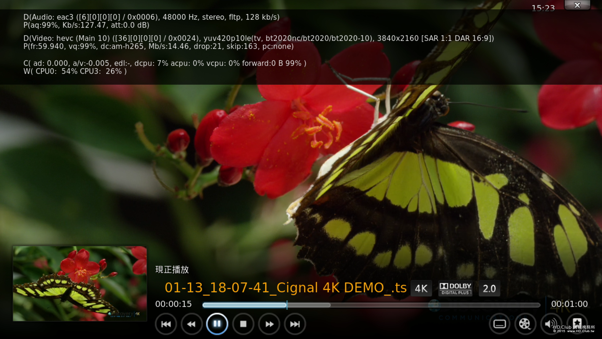 下面來看看X5播放4K 10BIT HEVC 60FPS文件的能力