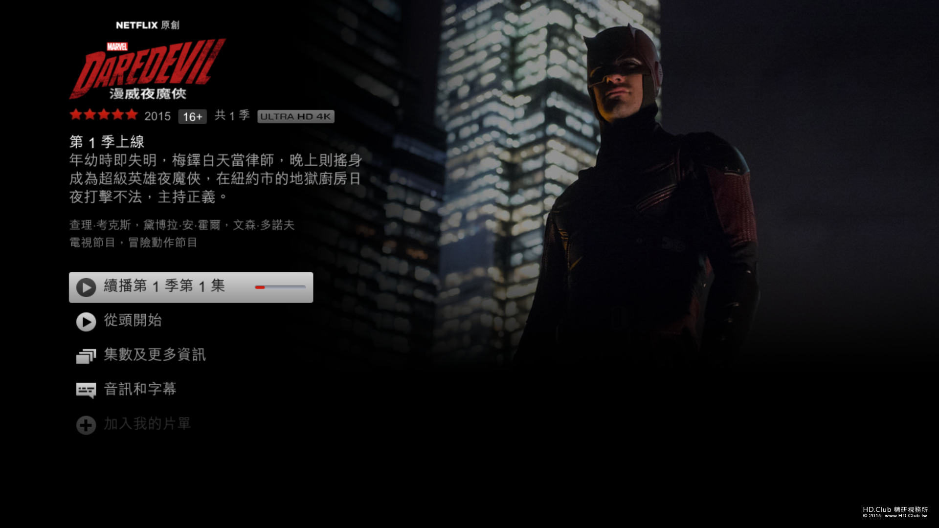 同樣一部影集, 連接具備 HDCP 2.2 的 4K 顯示器 (電視為 Panasonic 40CX600 播放機為 nVIDIA SHIELD TV)