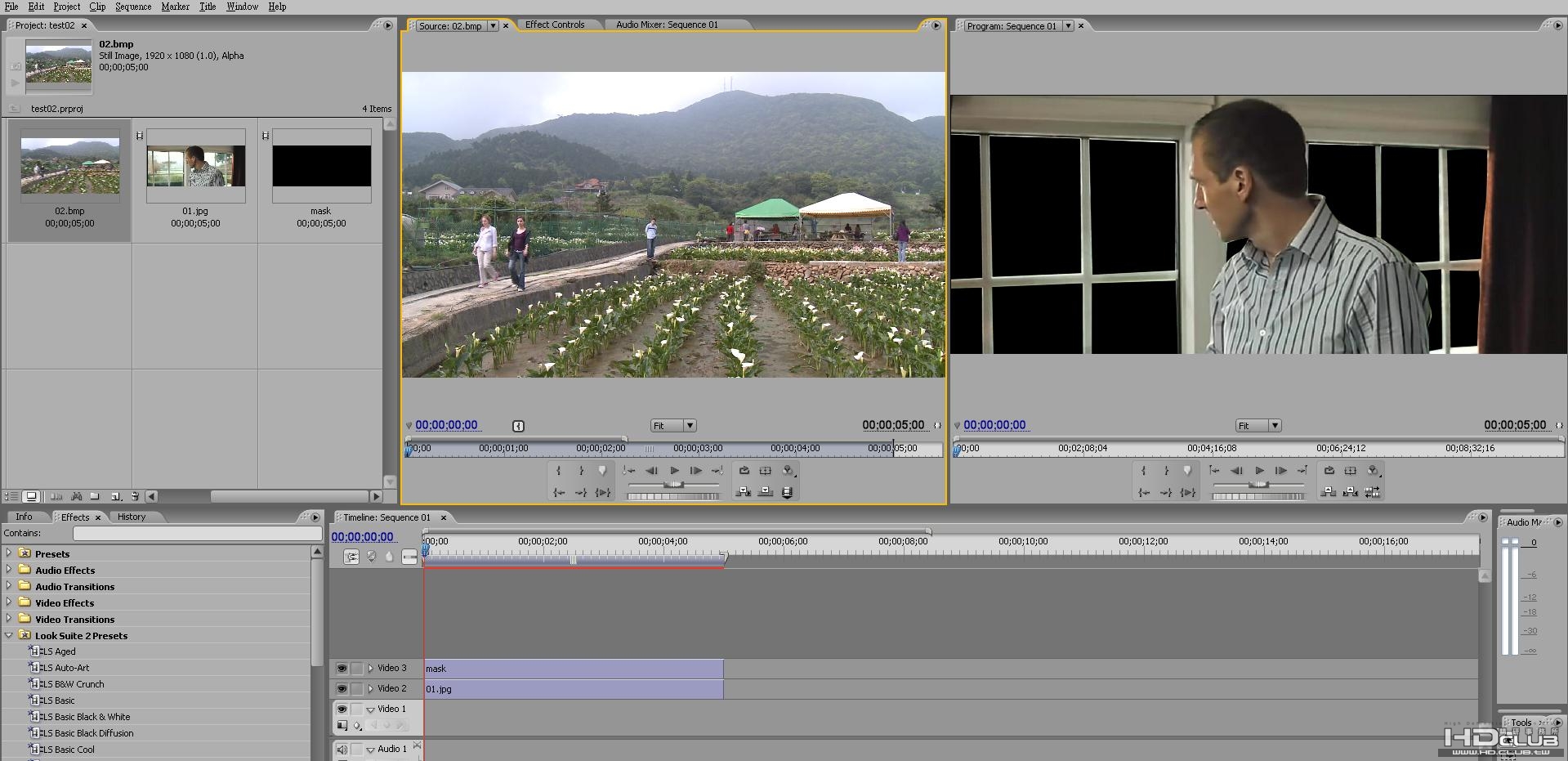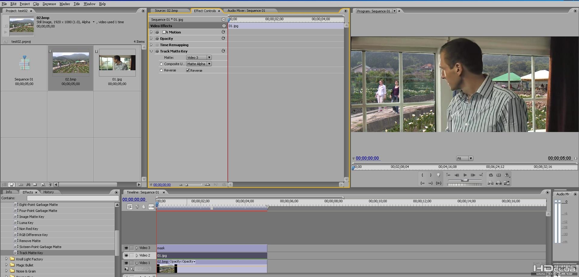 11-第二軌影片添加 Track Matte Key . 其設定如圖 . 第一軌的影片就出來了