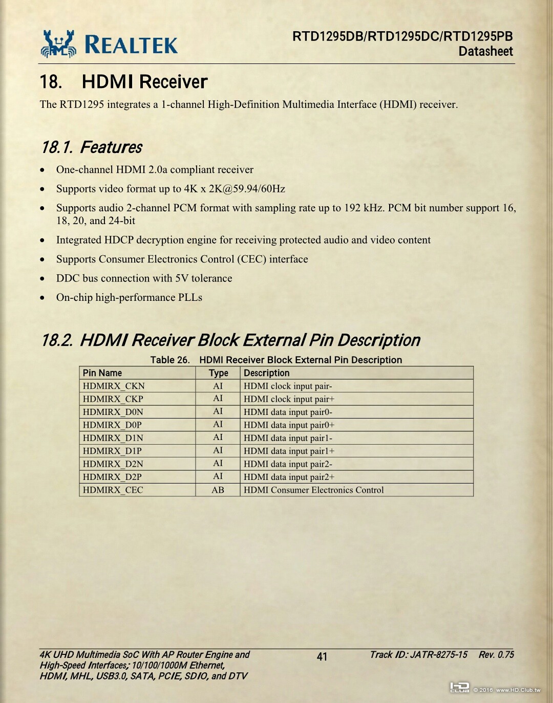 SoC – Realtek RTD1295 quad core Cortex A53 processor with ARM Mali-T820 MP3 GPU
