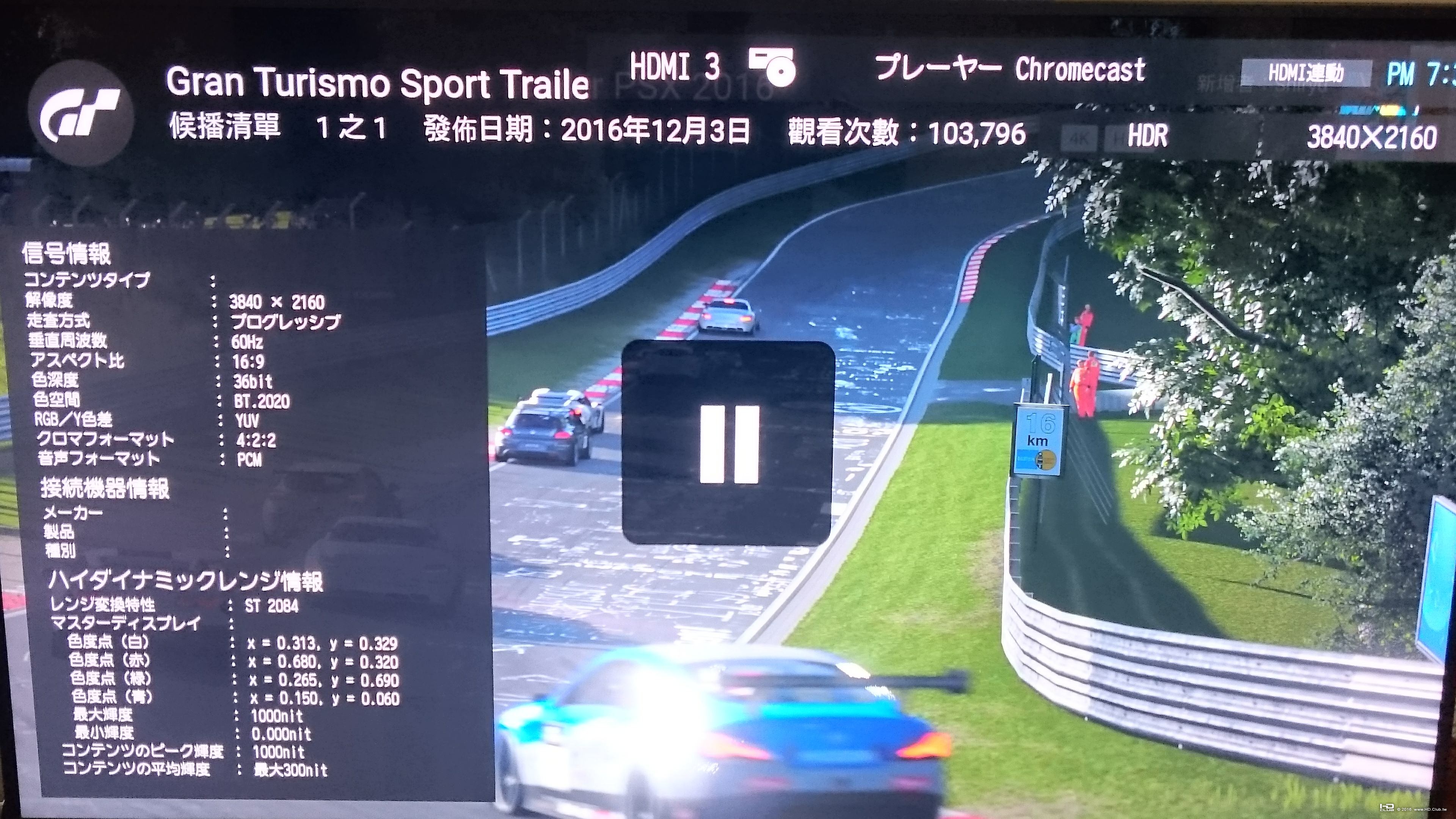 首先拿了 GT Sport 在 PSX 的宣傳片來試片, 4K HDR 全開無誤! 看完已經轉頭去訂一台 PS4 Pro 惹...