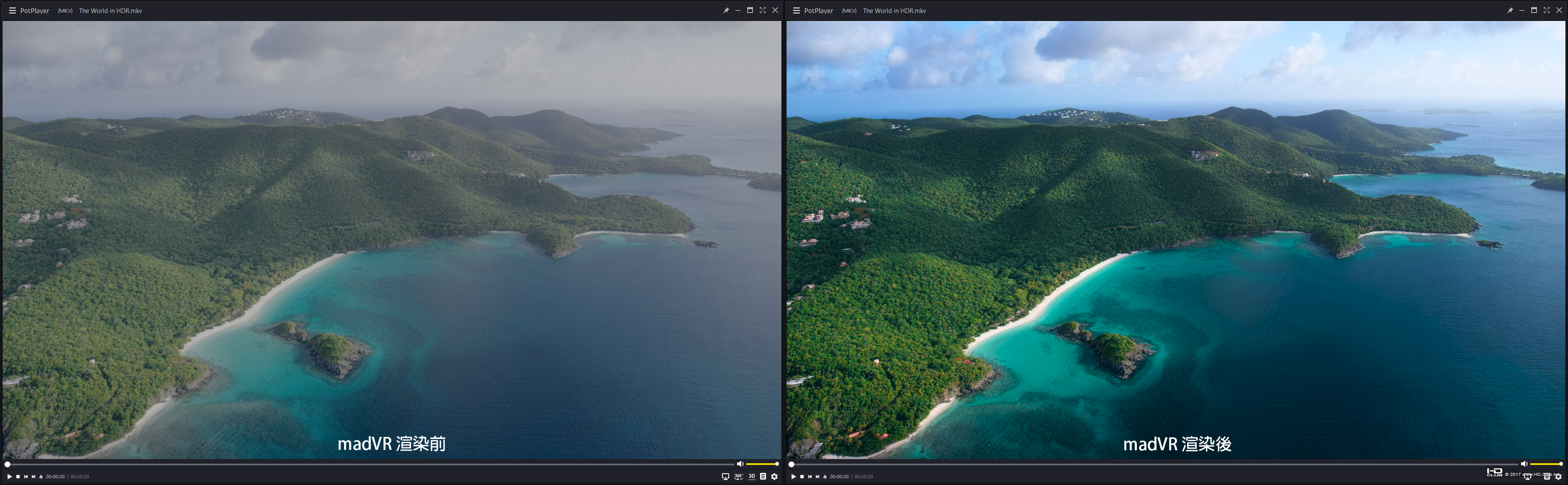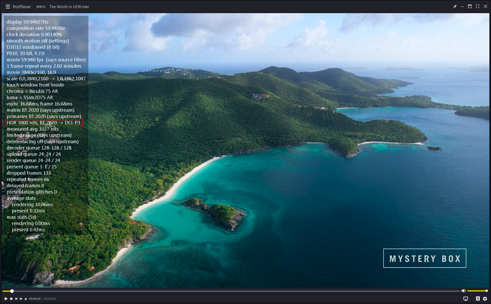 再者,Mastering Display 的值是以不明的 DCI-P3 Monitor 值帶入,而以 The World in HDR 為例,作者是採用 Sony BVM-X300 做調色監視器,所以應帶入的值為 G(13250,34500)B(7500,3000)R(34000,16000)WP(15635,16450)L(10000000,1) 而非 G(13250,34500)B(7500,3000)R(34000,16000)WP(15635,16450)L(10000000,10) ,隨意帶入任意的數值也是有可能造成 Tone Mapping 的問題