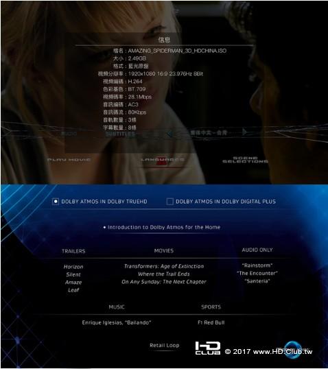 2017年5月更新的最新版韌體,自帶播放器對應UHD藍光原盤選單導航播放