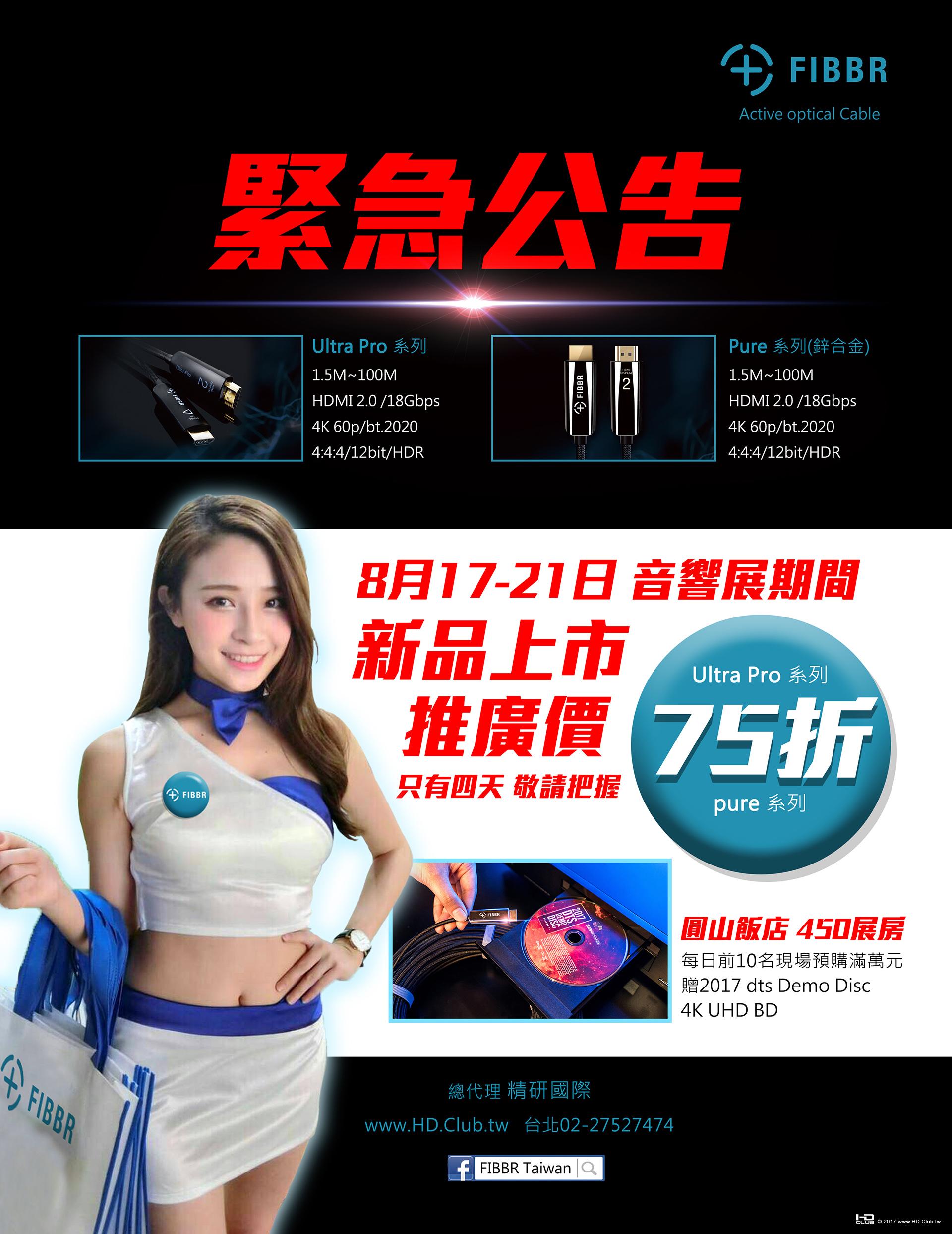 [業界新聞] 上次精研團購FIBBR HDMI光纖線錯失機會的朋友,這次圓山音響展的折扣千萬別再錯過了喔!!