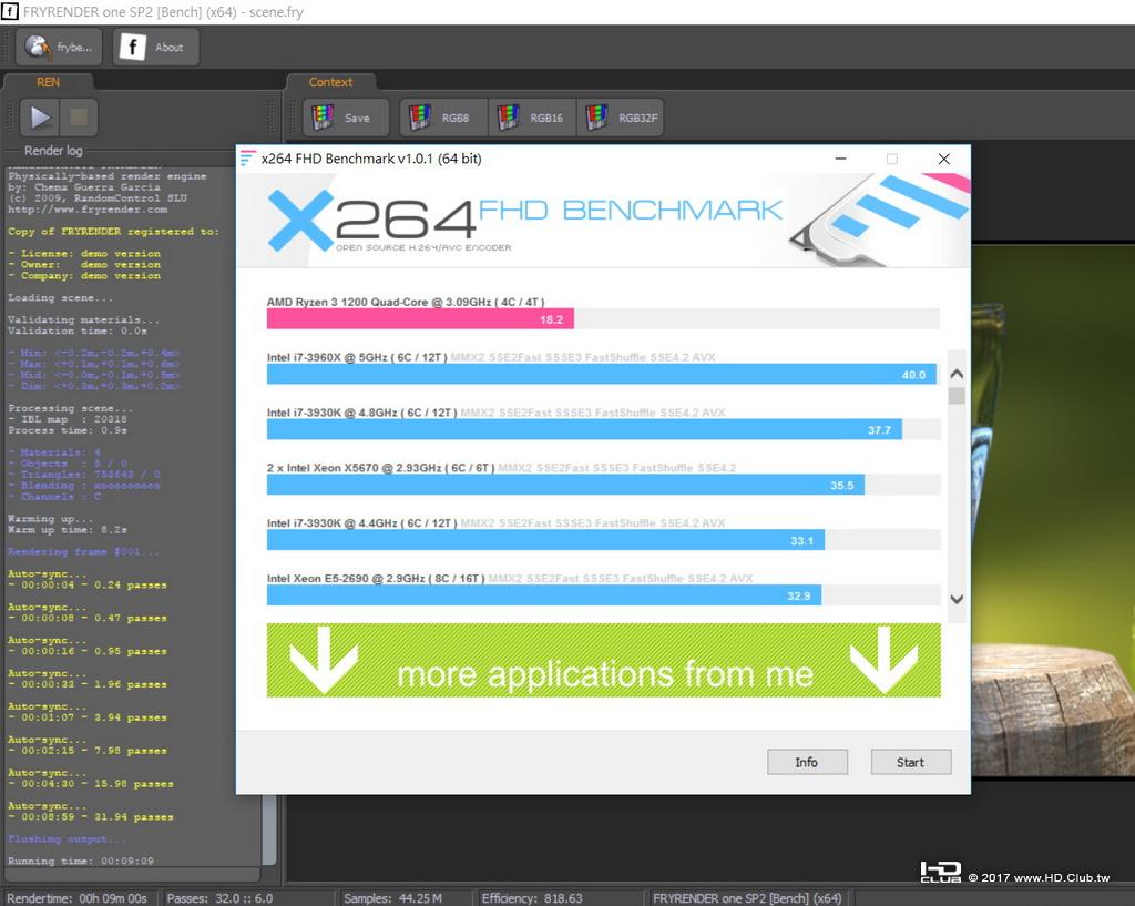 FRYRENDER由7100快了13秒,x264 FHD Benchmark則是由1200高出27.3%