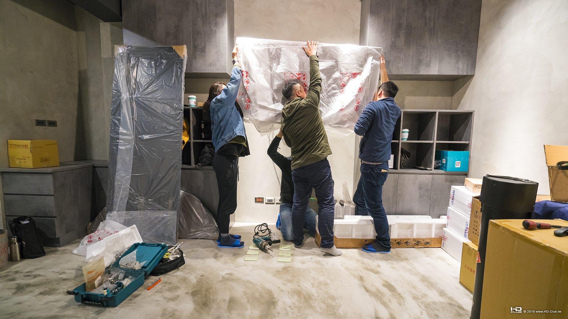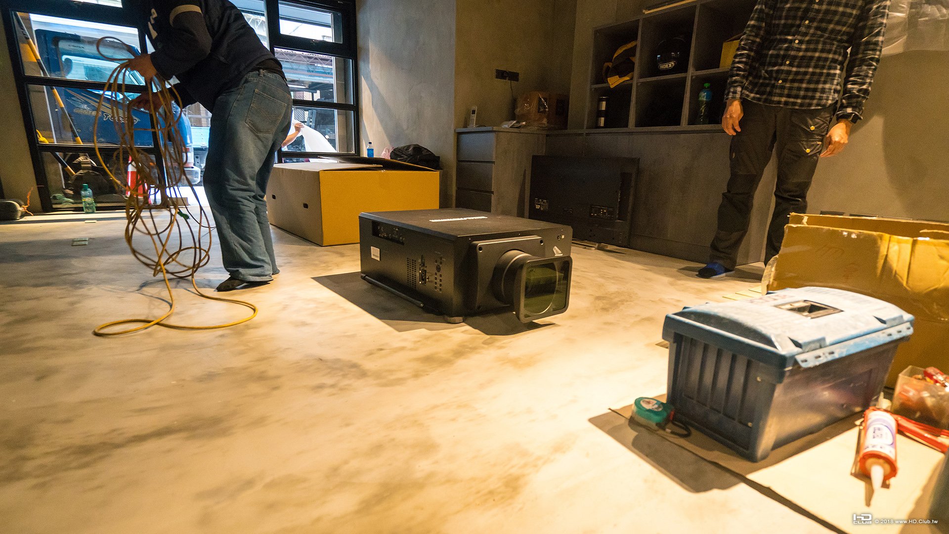 終於來到的新總部整個規劃最重要的時刻,由台達電研發團隊菁英花了一年時間才孕育出來的Digitalprojection投影機,正式型號為HIGHlite Laser 4K  12000,終於在今天抵達新總部安裝。面對如此超弩級身形,讓我想到很久很久以前標了三個會買來的Barco 801