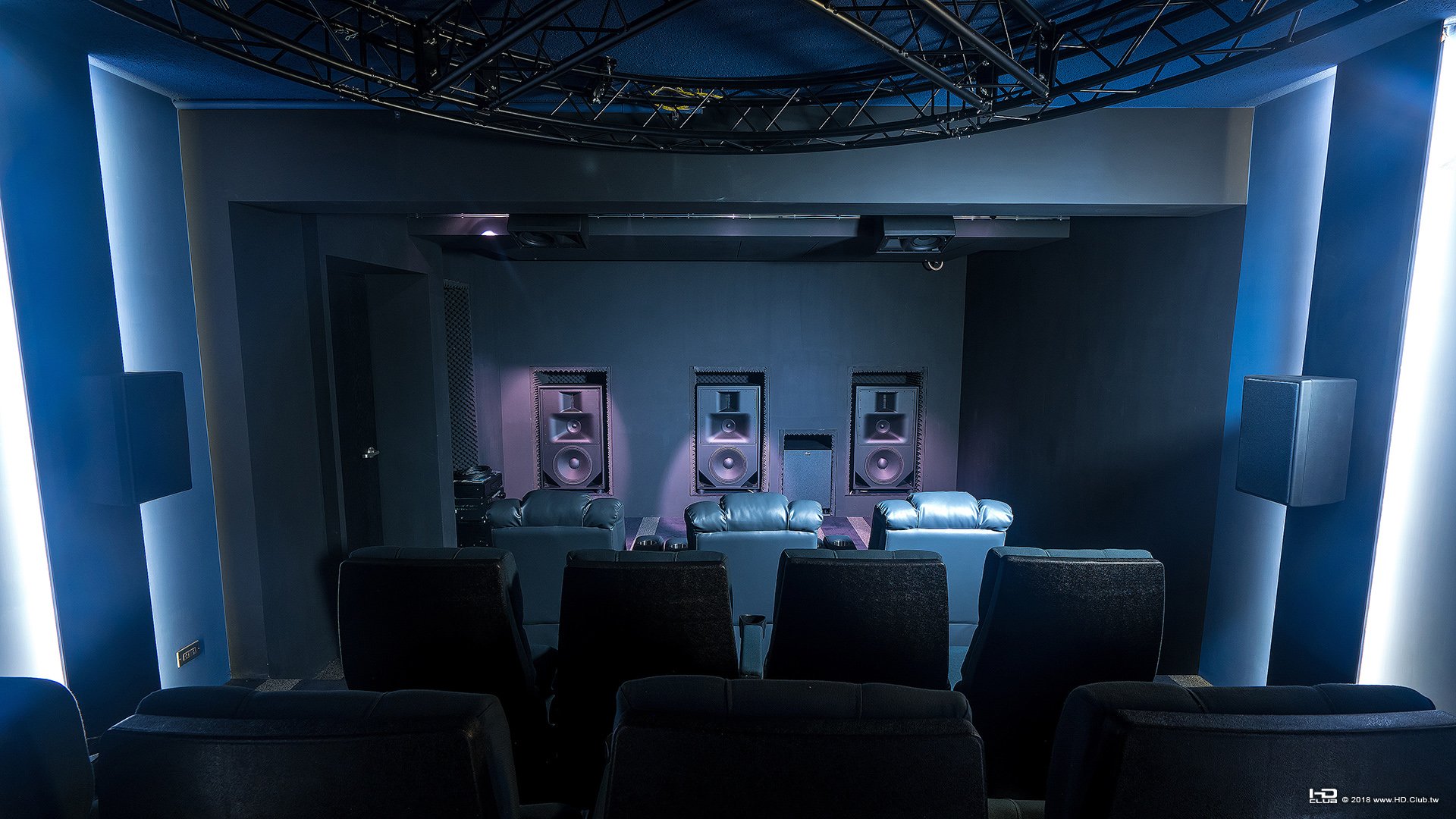精研小劇院,可以清楚看到前方三聲道已經做好準備擺放的位置