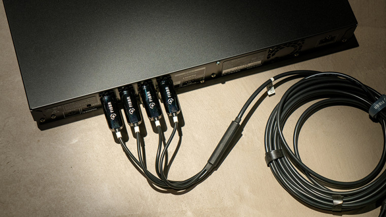 新總部還有代理FIBBR 的業務,整個工作室內部用了將近40條FIBBR Pure 系列HDMI光纖線。