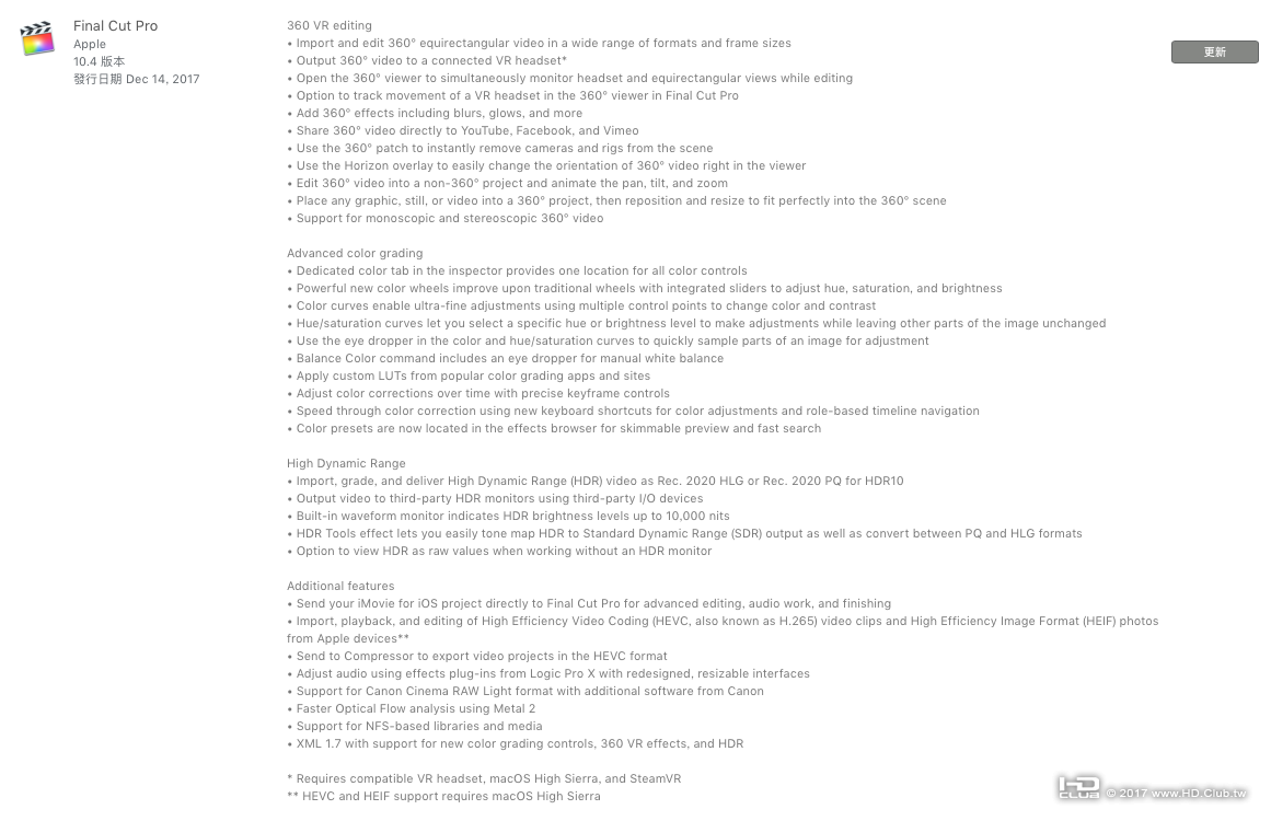 蘋果今日推出 Final Cut Pro X 10.4, Motion 5.4, Compressor 4.4 更新.........