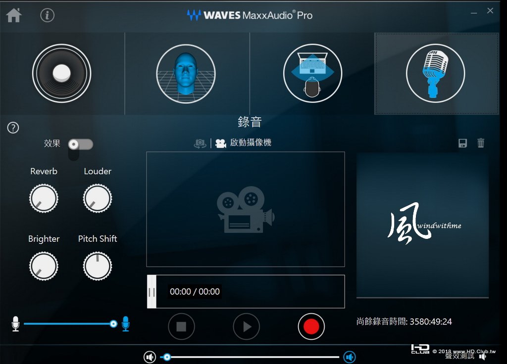 左方有4種設定聲音細節可以調整,上面還可以啟動攝像機做錄影錄音的功能