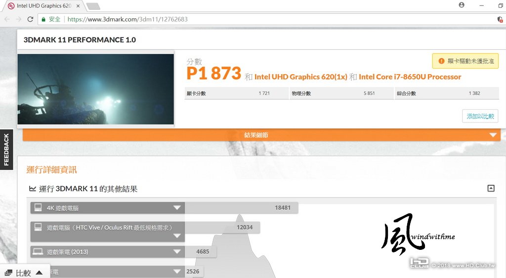 以上測試對比先前測試過的HP新版Spectre 13,CPU搭載i7-8550U
