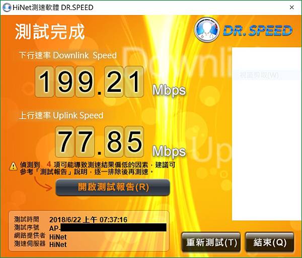 ▼ Wifi - 下載達到 199.21Mbps,上傳 77.85Mbps,不是很滿意的結果