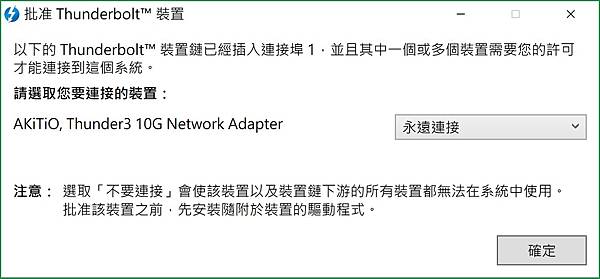▼ 接下來換上 Thunder3 10G Adaptor,接上筆電之後馬上會跑出訊息