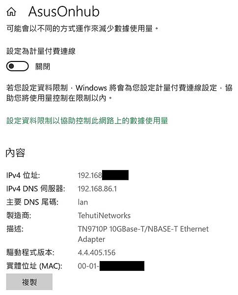 ▼ 走實體線連上 AsusOnhub,使用的網卡是 Thunder3 10G