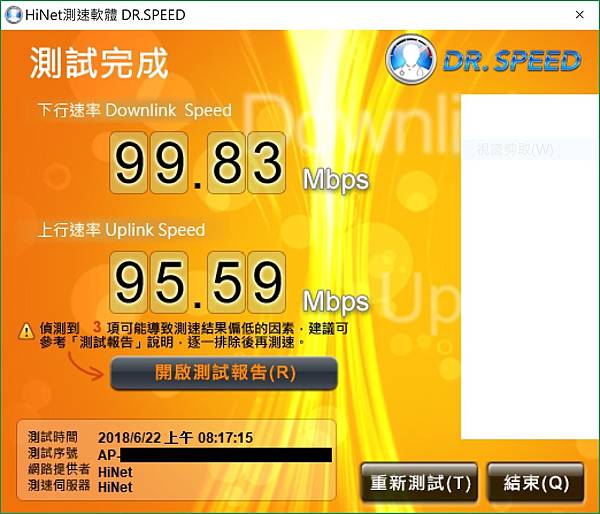 ▼ 然後用中華電信的網路測速軟體,