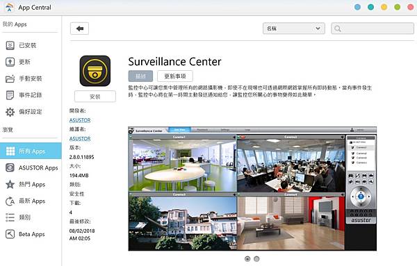 ▼ 你也可以將 NAS 變身為 NVR (Network Video Recorders) 視訊監控錄影機,Surveillance Center App 的安裝非常簡單,手機端這邊使用 AiSecure 來控制,別小看這個 Surveillance Center,絕對是專業級的 App,它有一些特色如下: