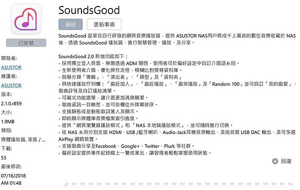 ▼想把 NAS 當作多媒體中心也沒有問題,NAS 端下載 SoundsGood App(音樂寶盒),手機端下載 AiMusic (資料庫與 SoundsGood 共用)