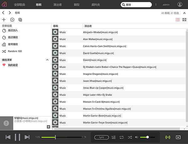 附註:ASUSTOR NAS 支援 USB DAC、USB/藍牙喇叭(插上一個藍牙接收器 dongle 就可以)、依機種支援 HDMI/SPDIF 音源輸出,當 NAS 本端外接有音源裝置,即可使用 AiMusic 進行選歌播放。(不過這篇開箱的 AS4004T 無 HDMI/SPDIF 音源輸出)