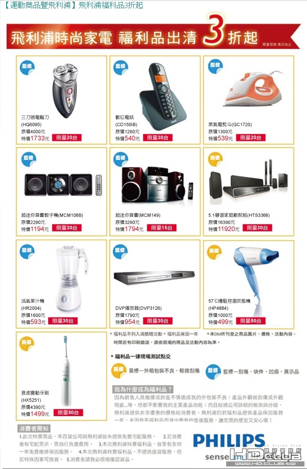 【已結束】6/19 ~ 7/2 運動商品暨利浦福利品特賣會(福利品出清三折)