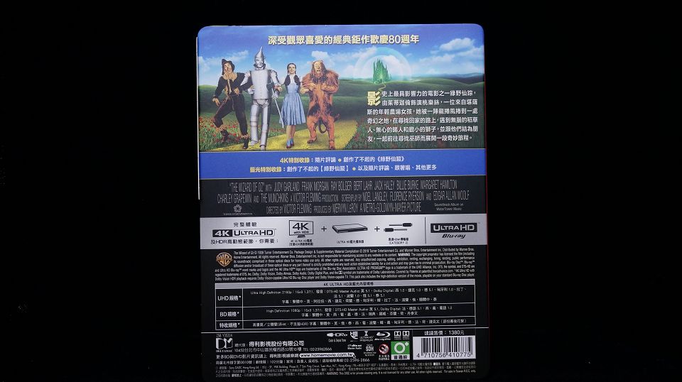 The Wizard of Oz (綠野仙蹤) 80周年紀念 4K UHD/BD,8K 16-BIT數位掃描原底片作為製成4K UHD BD的來源,4K UHD支援Dolby Vision,美版4K UHD會有中文字幕。發售日期2019/10/29