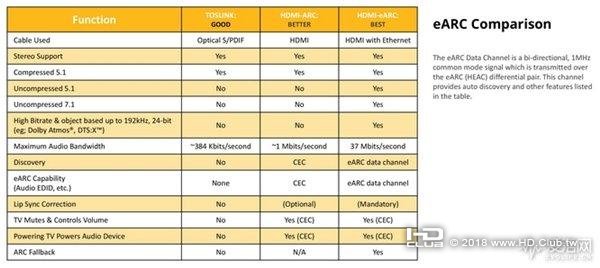 HDMI 2.1的TMDS頻率翻倍,達到了1200Hz,數據通道從3個增加4個,使用了新的16b/18b編碼,因而帶寬提升到48Gbps、最大傳輸速率提高42.6Gbps,最高可傳速8K/60P 10bit 4:2:0或10K30P 12bit 4:2:0視頻,假若傳輸VESA DSC 1.2a標準壓縮視頻,最高可傳輸10K/120P 12bit 4:2:0,速度有了質的提升。同時將ARC(音頻回傳)升級到eARC,eARC使用的是雙向1MHz共模信號,通過雙差分線傳輸,帶寬提高到37Mbit/s,可傳輸未壓縮的5.1和7.1聲道音頻,高品質的Dolby Atmos、DTX:X音頻,音效提升極為明顯。