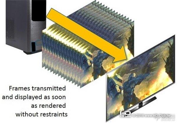 在電視具備可變刷新頻率能力後,可以擴展出更多用途——快速媒體切換、快速幀傳輸。不同內容源的解析度、幀速是不同的,電影可能4K/24P,體育節目可能是1080P/60P,為了保證流暢度電視在播放不同內容時刷新率不同,播放電影採用與幀速同步的24Hz,播放體育節目刷新提高到120Hz。這會造成一個問題,在切換內容或輸入源時電視會導致黑屏,有了快速媒體切換後不會有黑屏問題。快速幀傳輸也是同理,它能根據視頻源的幀速實時調整刷新率,讓遊戲、VR應用變得更為流暢。