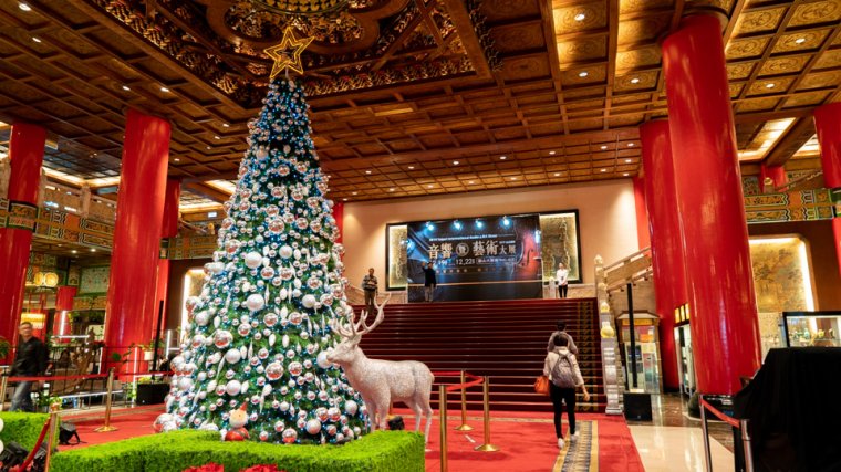 接近耶誕節,圓山飯店特別在入口大廳設置了巨大的耶誕樹來迎接來賓