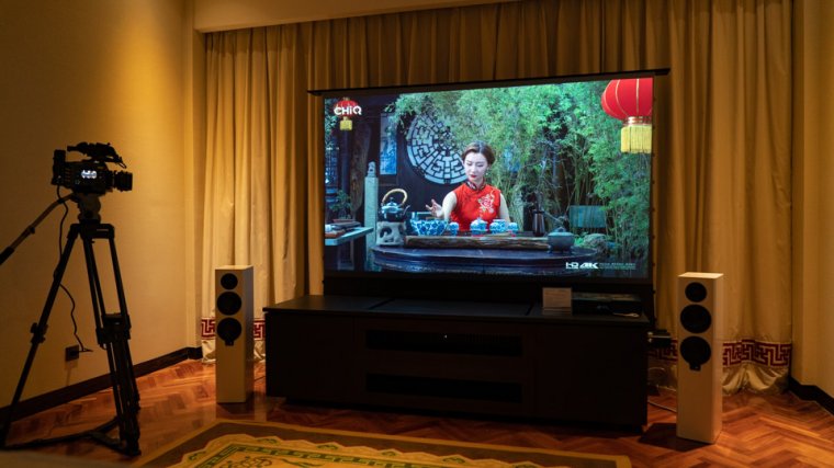 新記分為內、外兩個空間,外面的空間展示Sony VPL-VZ1000超短焦雷射投影機,搭配新款Elite Screen電動上升張力抗光銀幕,銀幕尺寸100吋。