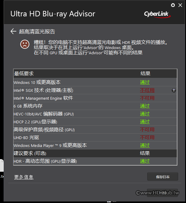 不是所有的外接 Ultra Bluray 光碟機都能支援 AACS 2.0 , 此項目沒通過, 您只能更換光碟機