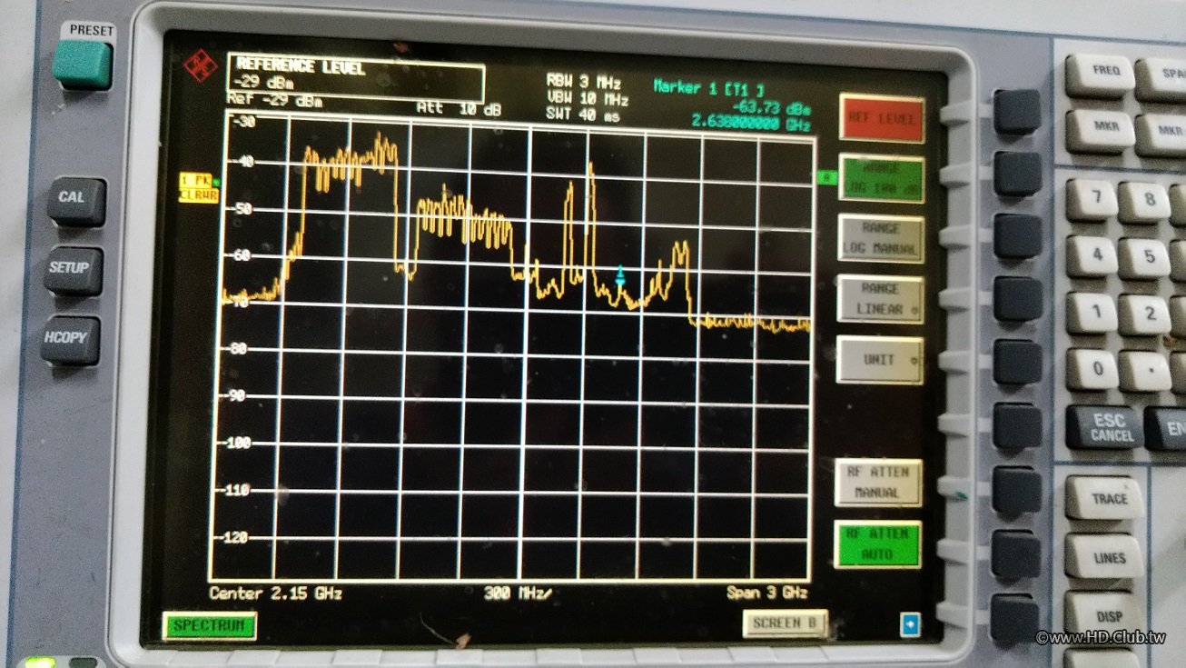 從天線下接收的原始訊號和經過RF轉光器材後的波形比較: