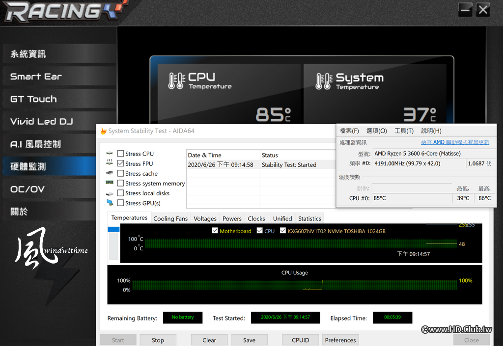 CoreTemp待機時約39度,全速燒機85度,最高達86度,