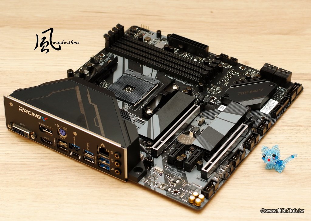 B550晶片組散熱片比起以往全黑設計較佳,有特殊外觀設計搭配Racing標誌增加質感。