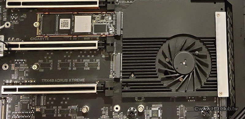 會選這張板子主要是經過幾個考量點,其中一點就是這張供電做的最好,用料也比較沒偷料,而且還直接送你一張SSD 4SLOT卡,方便處理8K影片時需求的影片傳輸速度。在這邊說明一下,因為我們這邊主要都在接面板電視廠的展示8K影片(我是跟著導演在做),所以製作的影片都是使用完全無壓縮的素材,7680X4320 60FPS/120FPS/240FPS/YUV444 12bit color/BT2100PQ HDR 這樣的素材,光是要單軌realtime plackback,每秒鐘最小需求6000MB/s到24000MB/s,所以絕對需要全速滿載的PCI-e 4.0 16X頻寬,目前已有一張特別卡,可以插8條NVMe Gen4X4 SSD,然後每條給2X頻寬去塞滿,去達到每秒27600MB/s的RAID卡,但那個成本高太多,目前的想法是等第二代Phison PS5018-E18主控的NVMe SSD,每條可達到7000MB/s讀取和5000MB/s的寫入,組4條RAID-0理論可達到20000MB/s讀取和15000MB/s寫入,同時拉高IOPS,對3D算圖和合成會有很大的幫助。當然技嘉這張板子不是沒有缺點,技嘉向來BIOS沒有比華碩的穩,這次選這板子只是為了省錢,和華碩頂板比起來差到五千多(主機板差價+SSD RAID卡),但是代價就是要賭BIOS人品。
