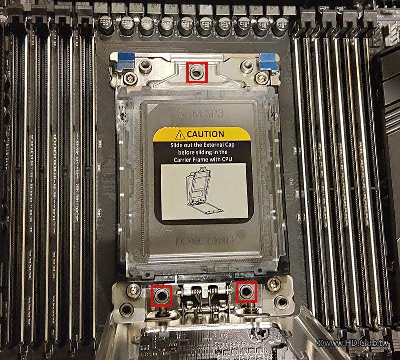 用CPU插槽專用螺絲起照說明書寫的順序旋開三個紅框標示的螺絲
