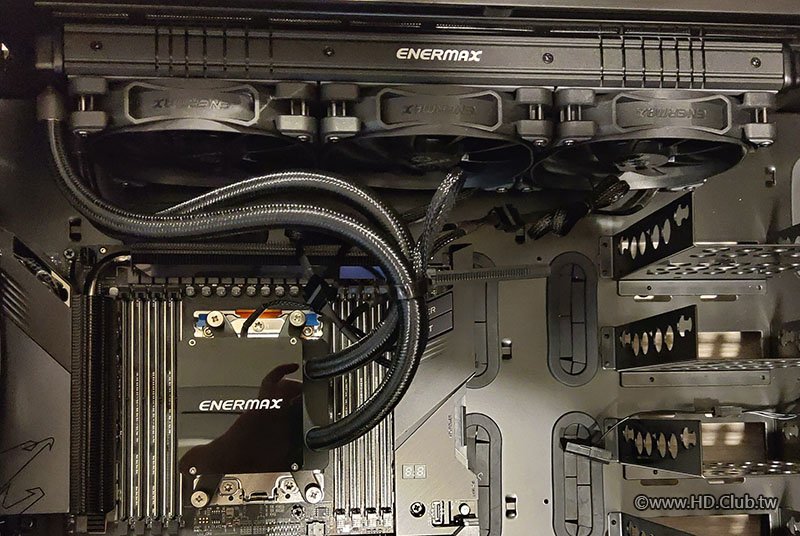 準備上水冷,聯力PC-V3000可以裝兩組480mm水冷,一個在側邊,另一個在正上方,考量到未來換RTX3080Ti/RTX3900雙顯卡說不定我會加一組開放式水冷去壓制熱量,所以ENERMAX這組水冷就決定放上方的位置。