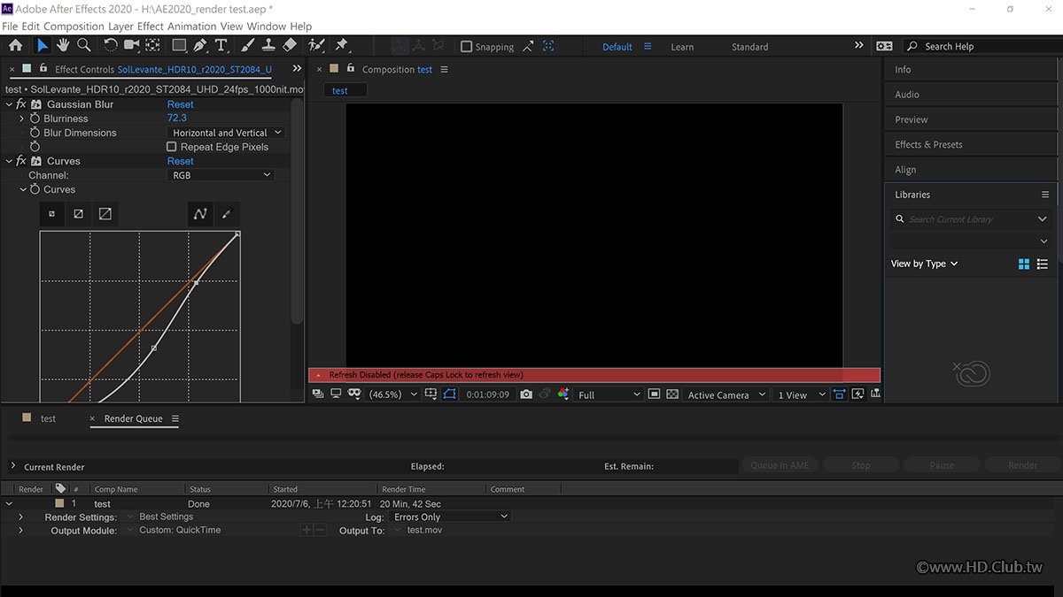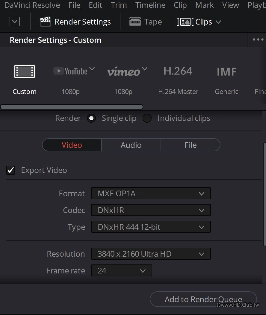 設定一個Curves調光,使用DNxHR 444 12bit codec壓縮