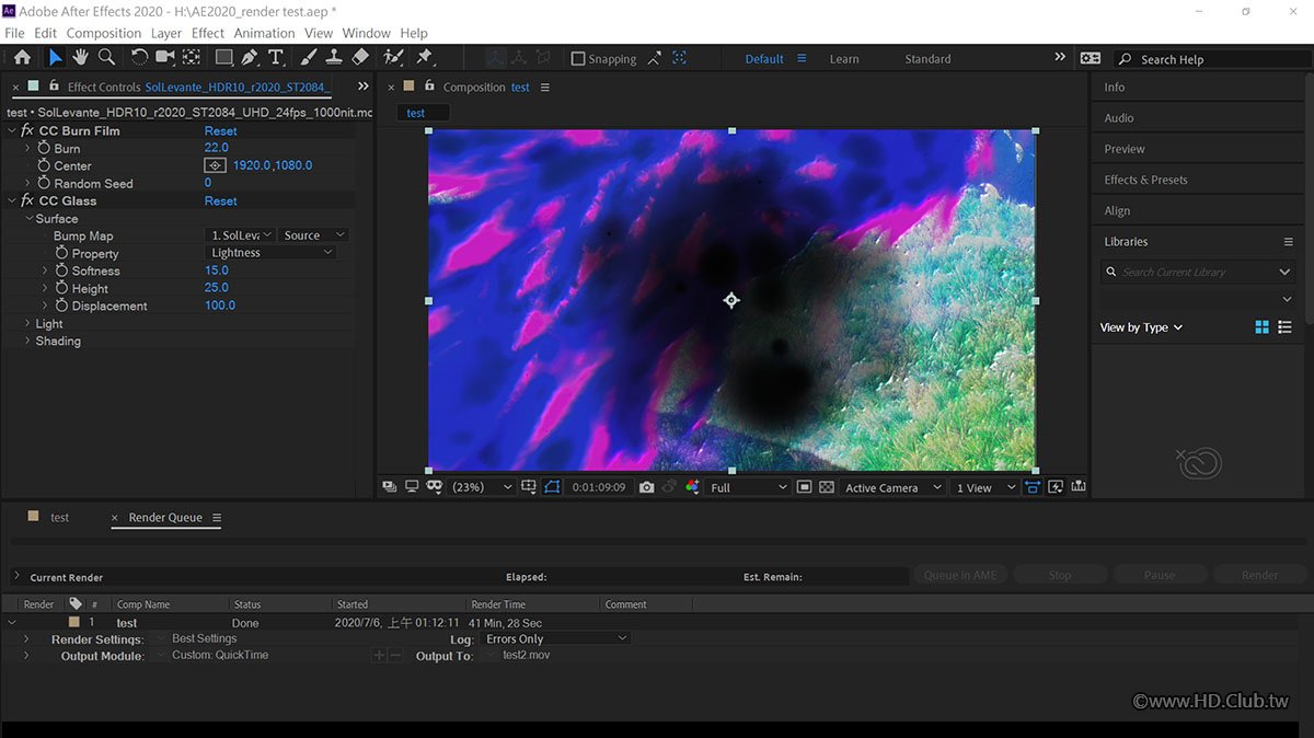 CodecAVID DNxHR RGB 444 10bit / EffectCC Burn Film&CC Glass