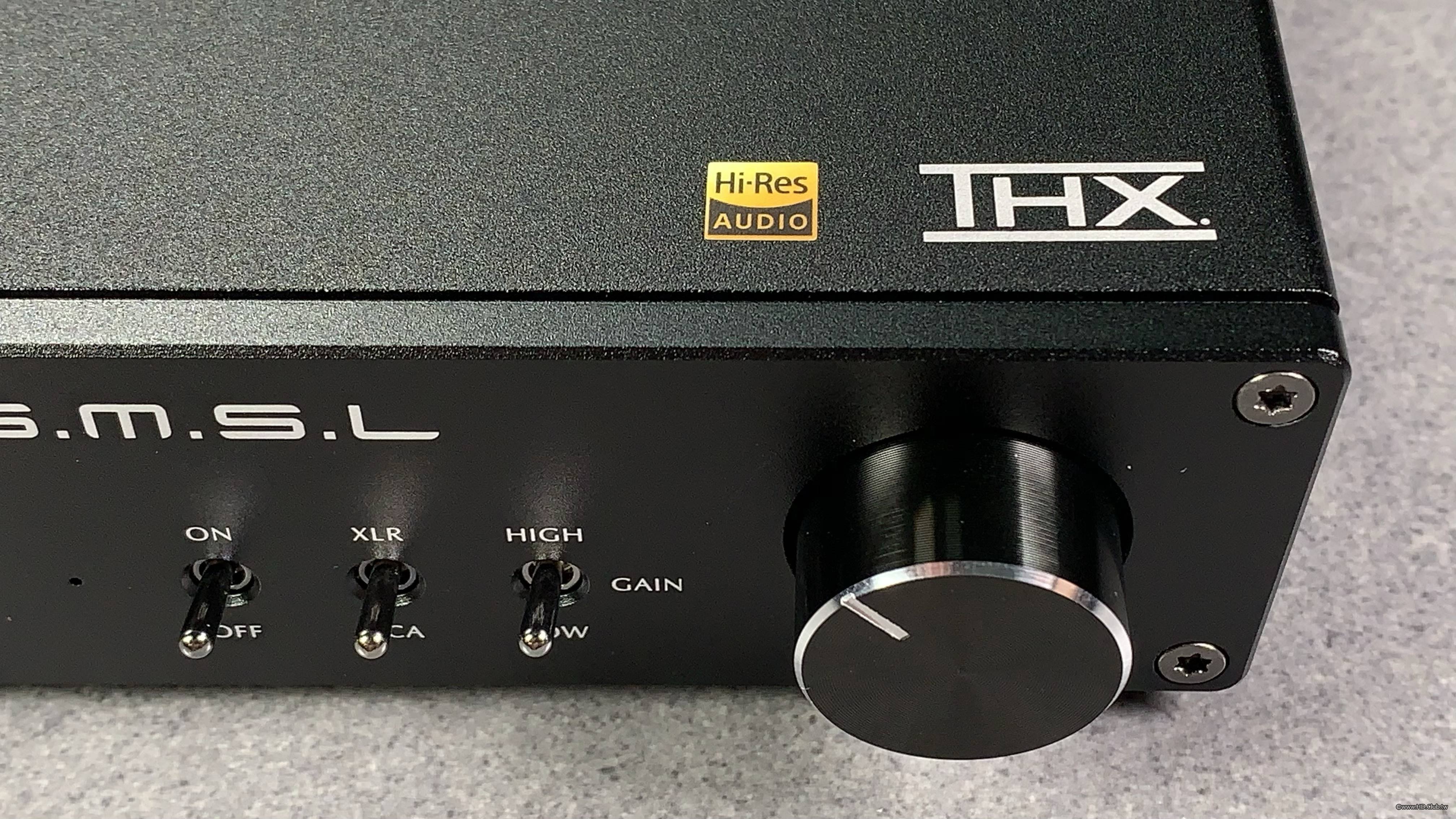 右上角印有日本 Hi-Res 及 THX 認證,中間的操作切換則是復古的上下撥動開關,