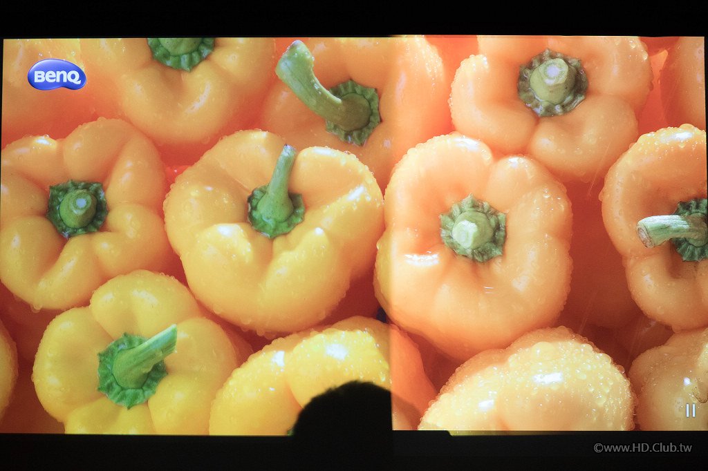 BENQ的老玩家以及專業的發燒玩家們非常在意的一件事情,是否仍然保有導演機的一慣的血脈?這一點真的請大家放心。豐富的選單功能、色彩管理、白平衡等等細微的調校以及CinematicColor的獨家技術仍然會下放至v6000。以下拍攝了幾張與5700 AB測試的畫面。由於兩台機器的亮度不一樣,左右會有差異,中間的部份會有一點疊影。實在因為兩台機器只看左右,要能完美結合有一點難度。所以我們僅參考左右的色彩表現。