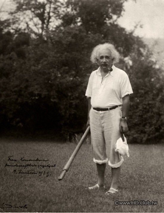 但在教科書上總是用半身照出現的愛因斯坦,過去也留下了不少張的全身照,只不過仔細一看可以發現,照片裡的他經常穿著短褲和女式涼鞋入鏡,讓人不免覺得突兀。