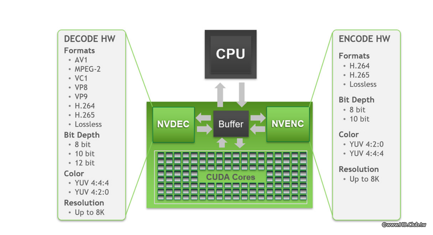 除了玩遊戲,影片解碼也是顯示卡的主要任務之一。今天NVIDIA更新官方文件,公開了Ampere架構RTX 30系列顯示卡的編解碼能力,確認支援AV1開放影片格式。