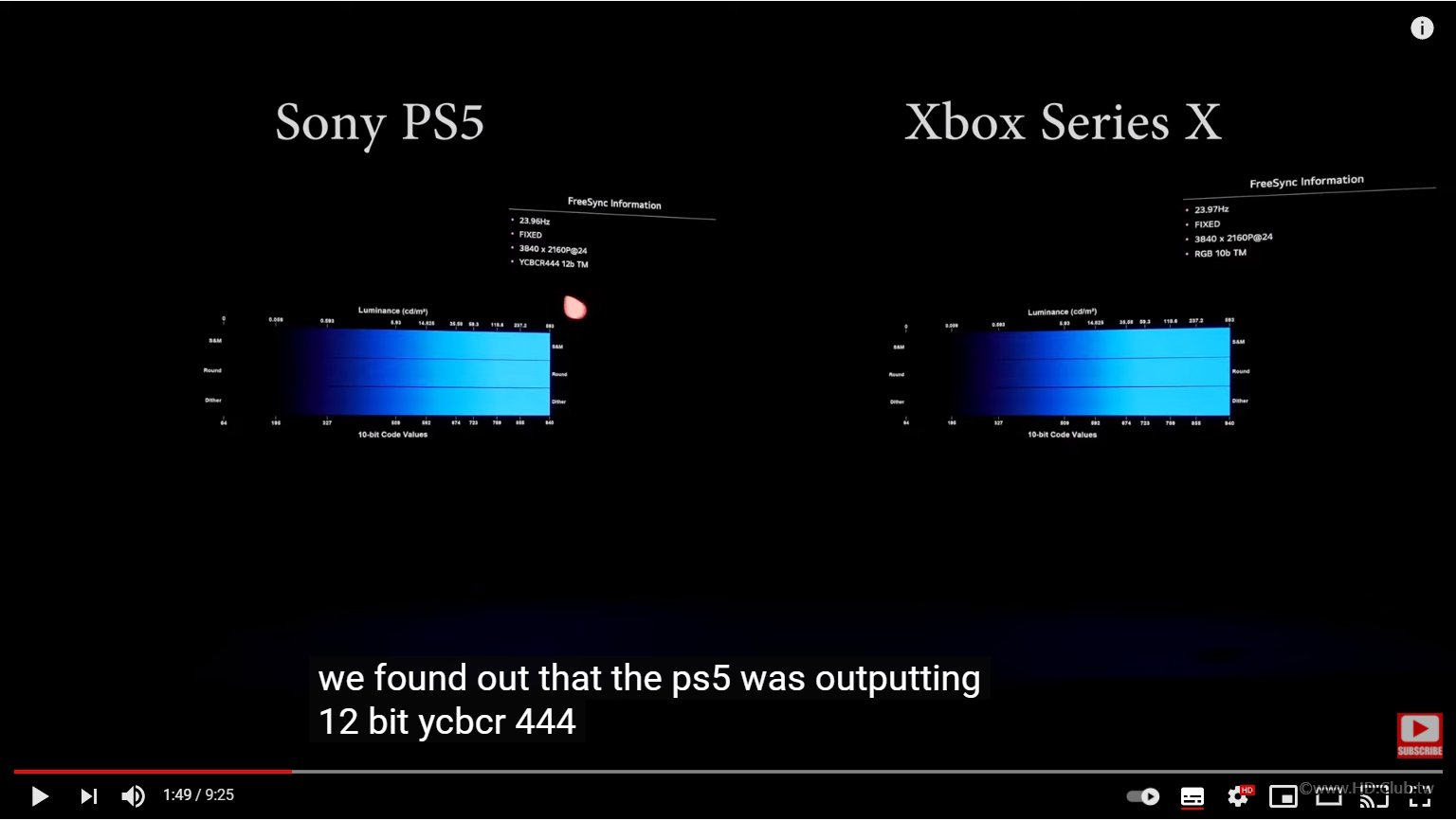 首先,就播放4K UHD時的發色而言,PS5能做到12bit ycbcr 444。