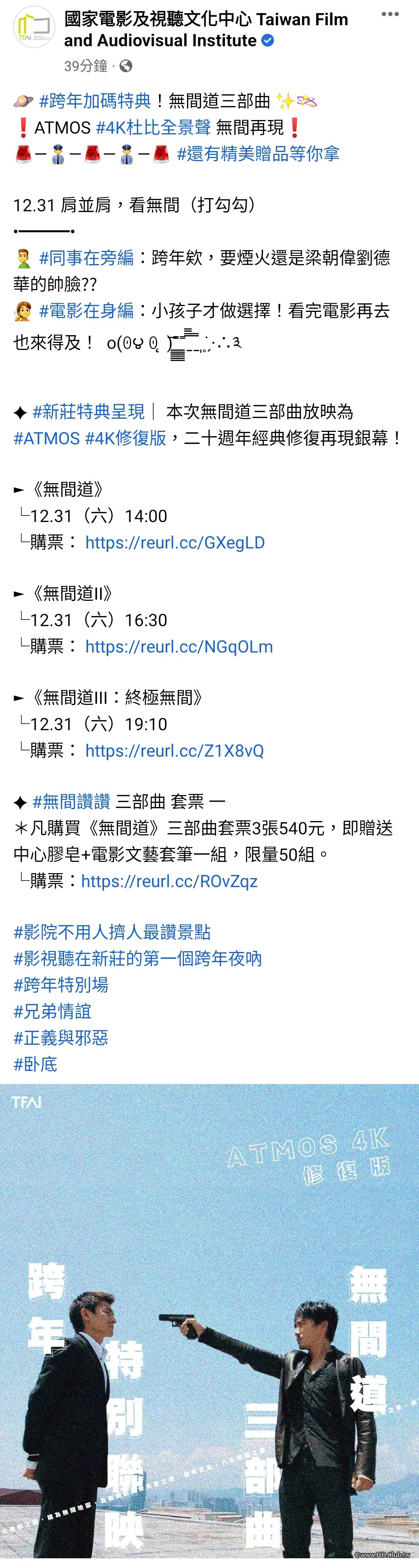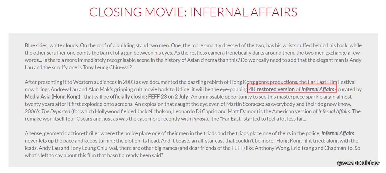 A marathon screening of all three “Infernal Affairs” films has been announced for the much delayed 46th edition of the Hong Kong International Film Festival.
