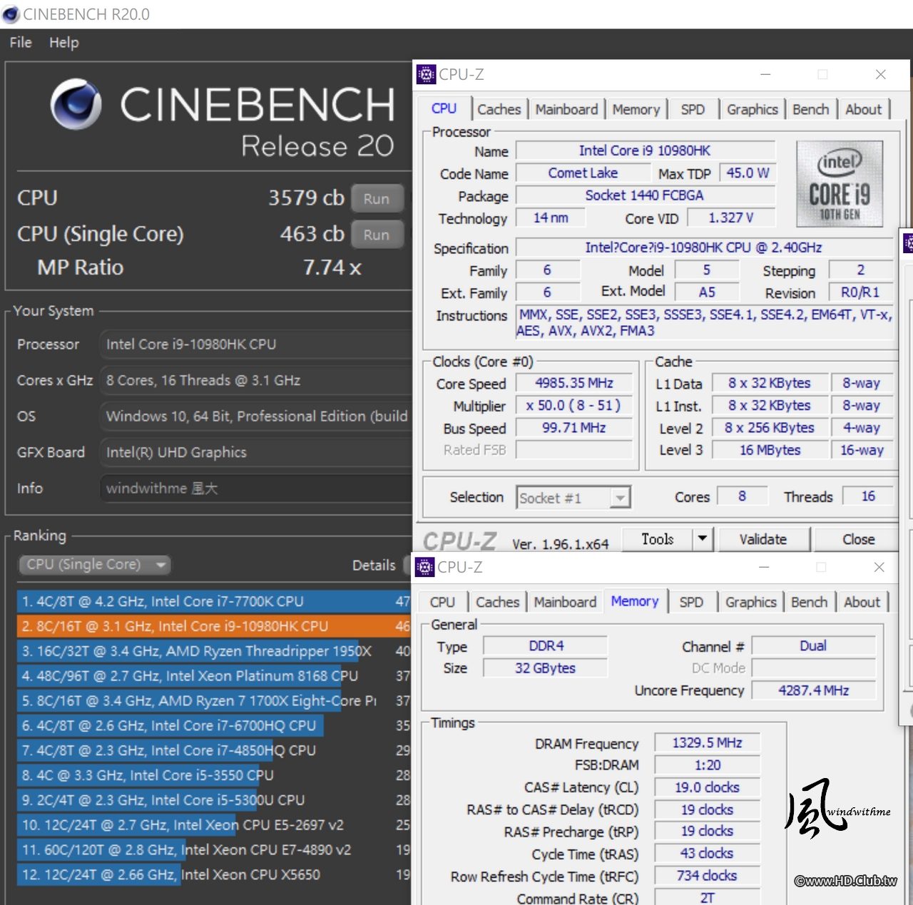 本台筆電搭載Intel Core i9-10980HK,屬於去年6月到今年6月的高階定位,