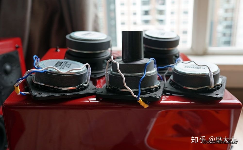 其中一隻高音為導管式高音,讓高音單元有更佳的低頻延伸,保證了絕佳的中高頻融合。中間那根像棍一樣的,就是M150的導管式高音。