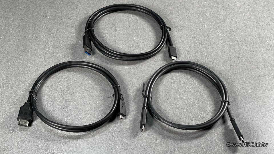 配件的線材共有三條,Micro HDMI to HDMI cable,USB-C 傳輸線,USB-C to A cable